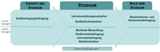 Befragungen im Bereich Studium und Lehre sind ein klassisches Instrument um ein Meinungsbild der Studierendenschaft oder der Lehrenden zu bestimmten Themen oder Fragen zu erhalten. Sie sind ein Mittel um systematisch, zusätzlich zu den Lehrevaluationen, Informationen zur Optimierung von Studium und Lehre zu generieren.