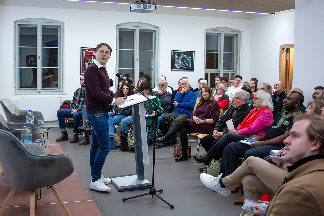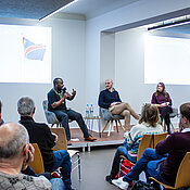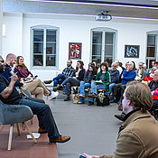 Unter der Moderation von Dr. Julien Bobineau (JMU-Alumnus) entfaltete sich im Schelling-Forum der Bayerischen Akademie der Wissenschaften ein lebendiger Dialog zwischen den Disziplinen. Die Politikwissenschaftlerin Dr. Lilli Banholzer (Bayerische Wissenschaftsallianz für Frieden, Sicherheit und Konflikt FoKS) und der Literaturwissenschaftler Prof. Dr. Gilbert Shang Ndi (Uni Bayreuth/BAdW) beleuchteten, wie Musik und Literatur als Seismographen für gesellschaftliche Spannungen fungieren.
