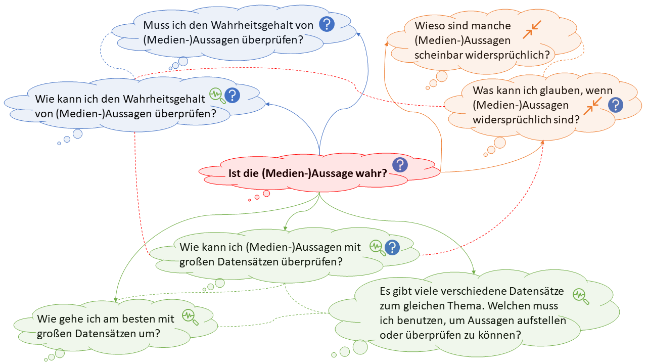 Im gesellschaftlichen Diskurs sind viele Meinungen, Aussagen und Daten aus öffentlichen und sozialen Medien im Umlauf. Dabei werden auch (zunehmend) falsche Informationen, sogenannte Fake-News, gestreut, die versuchen die Meinungsbildung zu beeinflussen. Eine Förderung der Fähigkeiten zur Evaluation von (Medien-)Aussagen ist notwendig. Dabei ist der Umgang mit großen Datensätzen erforderlich, da sowohl das Volumen als auch die Zugänglichkeit verfügbarer Daten zunimmt und (Medien-)Aussagen häufig auf Daten basieren. Zentral dabei sind mathematische und statistische Fähigkeiten. Diese müssen im Mathematikunterricht gefördert werden, um eine reflektierte Haltung im gesellschaftlichen Diskurs einnehmen zu können.