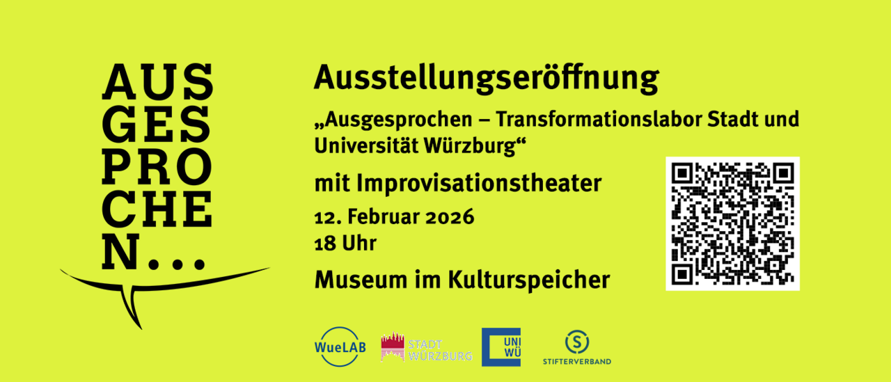 Am 12. Februar 2026 findet im Museum im Kulturspeicher ab 18:00 Uhr die Eröffnung der Ausstellung "Ausgesprochen – Transformationslabor Stadt und Universität Würzburg" mit einem Improvisationstheater statt, organisiert vom WueLAB Nachhaltigkeitslabor der Universität und der Stabsstelle Klima und Nachhaltigkeit der Stadt Würzburg.