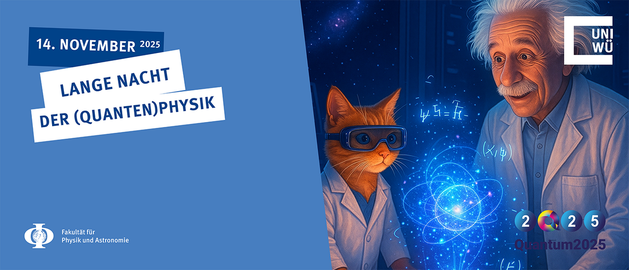 Dieses Jahr ist Quantum 2025, das internationale Quantenjahr. Passend hierzu bieten wir, die Würzburger Fakultät für Physik und Astronomie ein spannende Nacht für alle Interessierten an. Ob Familien mit Kindern, Studierende oder andere Teile der Gesellschaft - wir laden euch alle auf eine spannende Nacht voller (Quanten-)Physik bei uns ein!
