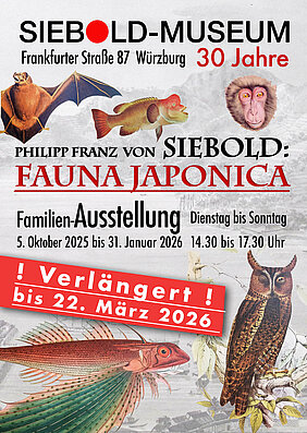 Über Japans Tierwelt war kaum etwas bekannt, bis der junge Würzburger Mediziner Philipp Franz von Siebold (1796-1866) 1823 bis 1829 die Fauna und Flora Nippons erforschte. Ergebnis war ein prächtig illustriertes Werk, das er über Jahrzehnte hinweg in Teillieferungen veröffentlichte.