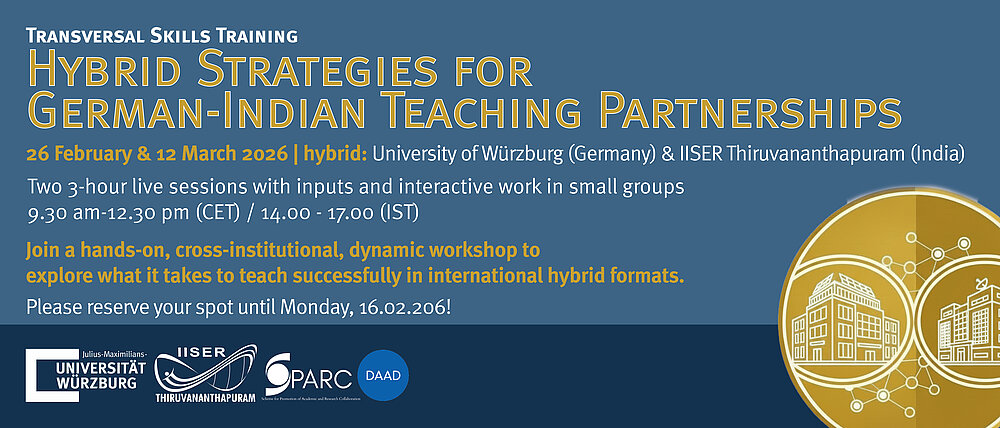 - Hybrid participation: Join either on-site at University of Würzburg (Germany) at IISER-TVM (India) or online