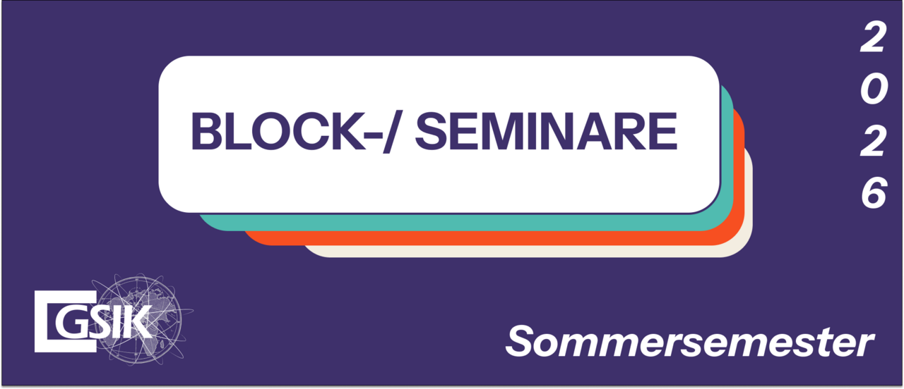 18.03.2026Zusätzlich zu den angebotenen GSiK-Veranstaltungen aus den verschiedenen Fakultäten organisiert das GSiK-Büro weitere Veranstaltungen, um das GSiK Programm um aktuelle Themen zu erweitern und Euch eine vielfältige Auswahl zu bieten. Wir freuen uns auf Euch!
