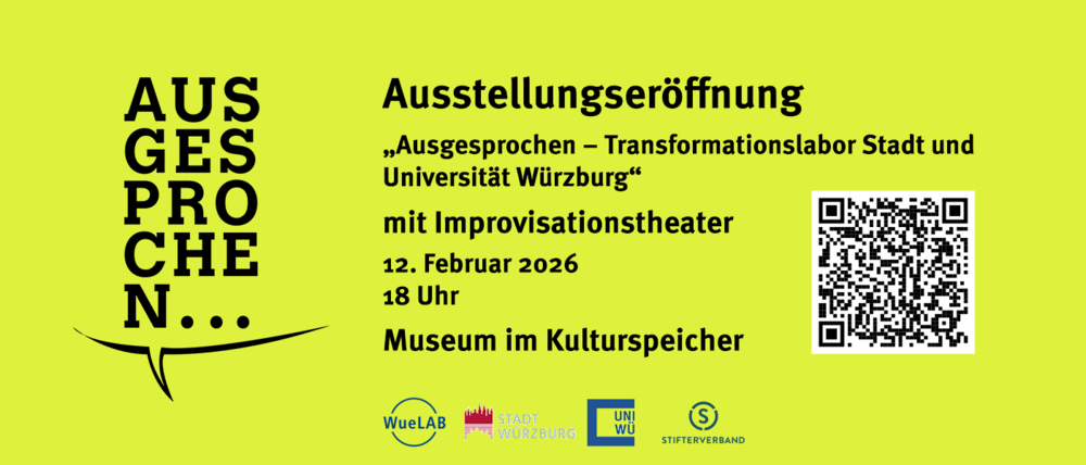 Wie können Stadt und Universität gemeinsam nachhaltige Zukunft gestalten? Dieser Frage widmet sich die Ausstellung „Ausgesprochen – Transformationslabor Stadt und Universität Würzburg“, die am 12. Februar 2026 um 18:00 Uhr im Museum im Kulturspeicher mit einem Improvisationstheater "Der Kaktus" eröffnet wird.