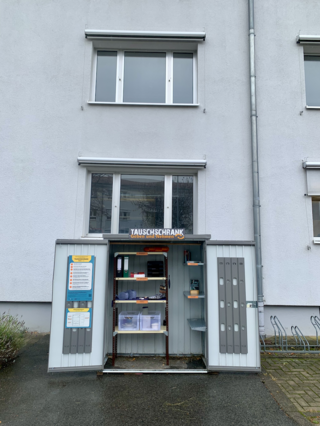 Mit der der Umweltstation der Stadt Würzburg konnte eine Zusammenarbeit eingegangen werden. Diese stellt den Tauschschrank und organisiert gemeinsam mit den Stadtreinigern Mitte/Ende April die Aufstellung und Installation des Schrankes.